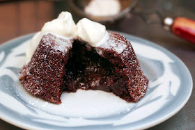 Generally, we like to stick to the more rustic basics, but occasionally we'll get a little fancy. Martha's Molten Chocolate Cake meets us right in the middle. It's one of the simplest  and quickest recipes we've ever used but because of the super gooey (read: still kind of raw) interior, it never fails to impress. The individual cakes are perfect for a dinner party, but even better if it's just one or two of you... after setting overnight, they transform into fantasticly gooey brownies. Because the cakes require so few ingredients, don't be afraid to invest in some good chocolate and butter - we like Scharffen Berger and Ronnybrook.